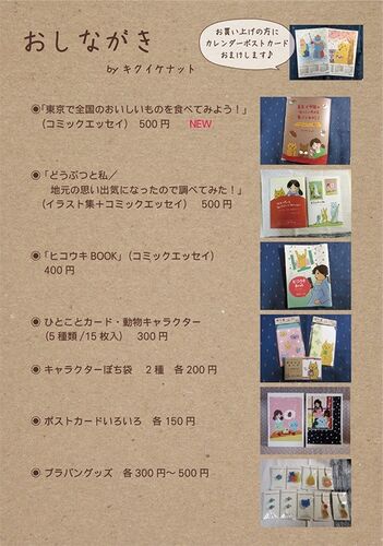 コミティアのおしながきをつくってみました〜。 新刊は東京で(アンテナショップなどに行って) 全国いろんな所の食べ物を食べてみよう!っていうコミックエッセイです。 お買い上げの方にはカレンダーポストカードおまけします♪ というわけで、もっかい明日の…